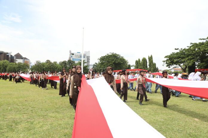 Kirab sejauh 2,4 kilometer itu diikuti 10 ribu pelajar, yang membentangkan Merah Putih dari Balai Kota Semarang hingga Lapangan Simpang Lima.