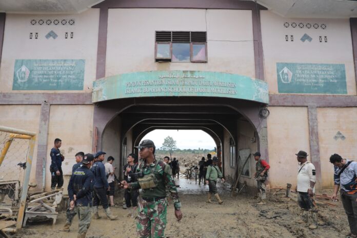 Berdasarkan pantauan di lapangan, Senin (22/12) malam, setidaknya lima unit alat berat berupa ekskavator dikerahkan untuk membersihkan ribuan gelondongan kayu yang menutupi halaman dan area sekitar ponpes akibat banjir besar yang melanda wilayah tersebut tiga pekan lalu.