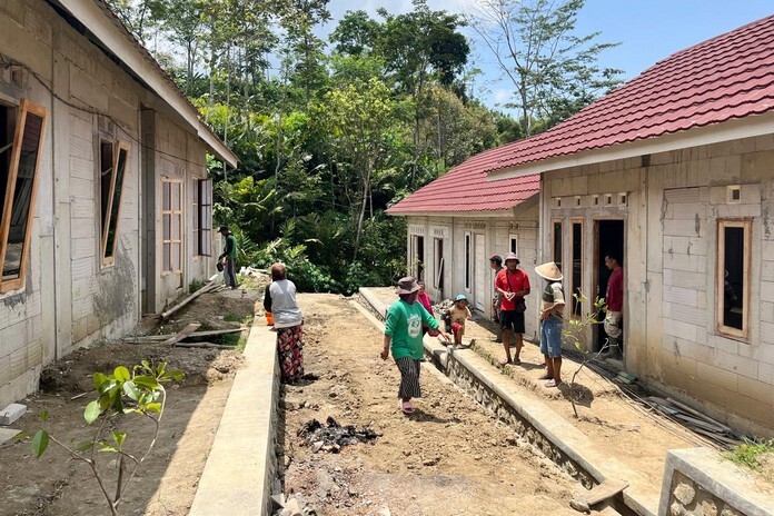 Kini, rumah baru sudah hampir selesai di lahan yang lebih aman.