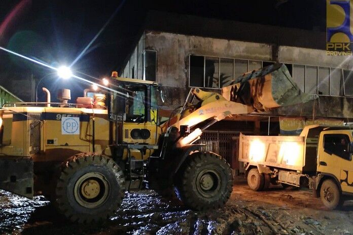Meski waktu telah memasuki tengah malam, proses pembersihan tetap dilakukan demi membuka kembali jalur transportasi dan menekan risiko bencana lanjutan bagi warga sekitar.