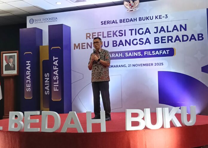 Semarang, Idola 92,6 FM-Kepala Kantor Perwakilan Bank Indonesia Jawa Tengah Rahmat Dwisaputra mengatakan pembangunan ekonomi Indonesia harus berlandaskan etika, adab dan pemahaman sejarah bangsa. Hal itu dikatakan dalam acara serial bedah buku ketiga bertajuk “Refleksi Tiga Jalan Menuju Bangsa Beradab” di kantor KPw BI Jateng, Jumat (21/11).
