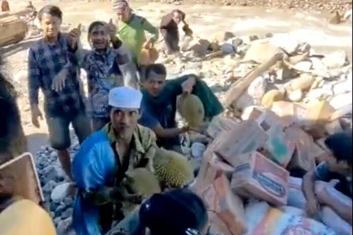 Usai helikopter mendarat dan proses penurunan logistik selesai, terjadi momen yang menghangatkan hati. Sejumlah warga mendekat, membawa beberapa butir durian, lalu menyerahkannya kepada awak helikopter. Tanpa banyak kata, pemberian sederhana itu menjadi ungkapan terima kasih atas bantuan yang telah sampai.