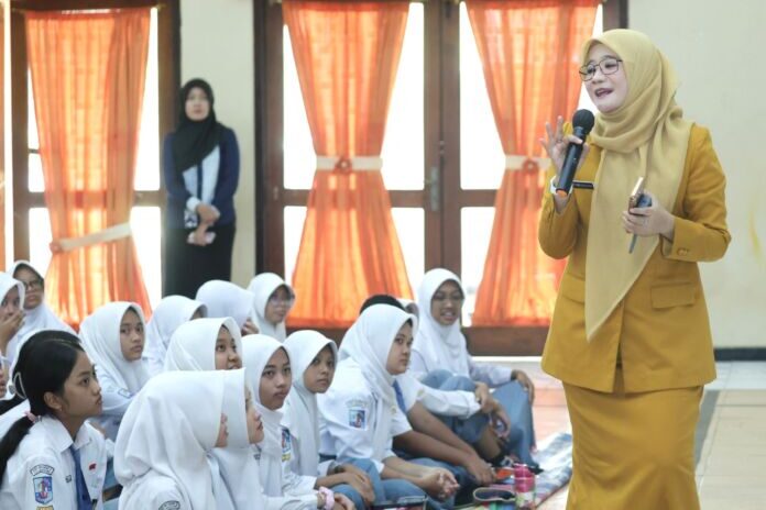 Bunda Literasi Jateng Nawal Arafah Yasin saat memberikan motivasi kepada pelajar SMA.