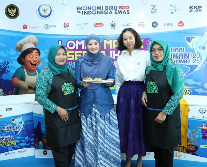Enik Riyani dan Mega Afrionika menghadirkan cendol ikan nila, pastry getuk nila hingga udang gulung saus lava merapi, dalam Lomba Masak Serba Ikan Nasional 2025 di Kementerian Kelautan dan Perikanan, kemarin.