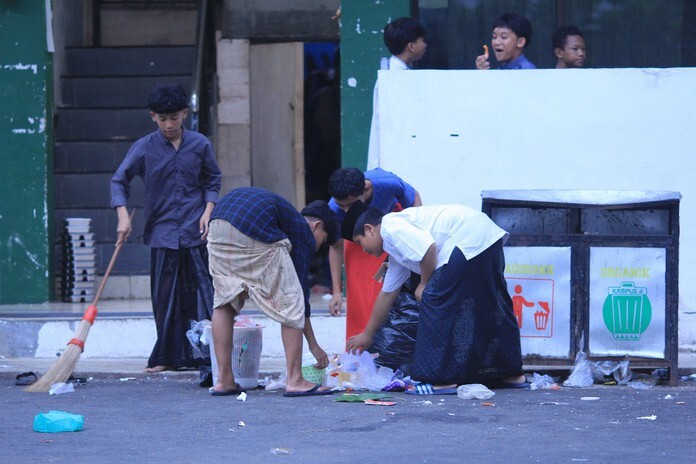 Kegiatan ro’an di Ponpes Askhabul Kahfi Polaman Mijen Kota Semarang, Minggu (19/10). Bagi santri, tradisi ro’an bukan hanya melatih kebersihan lahiriah, tetapi juga kebersihan hati. Santri yang terbiasa bekerja sama dan peduli lingkungan diharapkan akan tumbuh menjadi pribadi yang rendah hati, disiplin, dan bertanggung jawab. (Foto Dok. Ponpes Askhabul Kahfi)