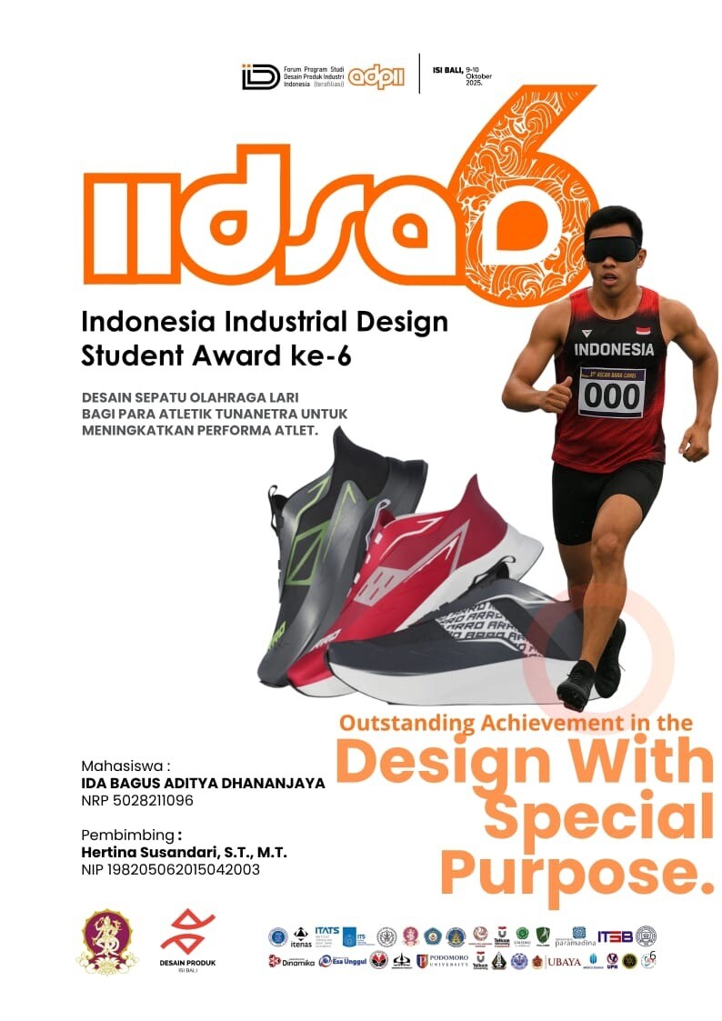 Kedua, kategori Design with Special Purpose dengan karya berjudul Desain Sepatu Olahraga Lari bagi Para-atletik Tunanetra untuk Meningkatkan Performa Atlet.