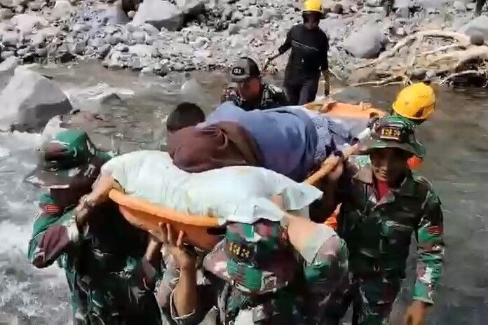 Dari video yang diterima, terlihat para prajurit TNI dibantu petugas Basarnas berjalan perlahan melalui jalan berbatu-batu, lalu menyeberangi sungai setinggi lutut orang dewasa sambil memikul ibu hamil dengan tandu ke posko kesehatan terdekat.