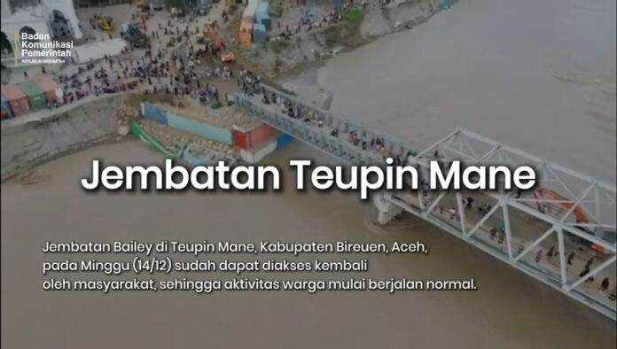 Kabar gembira datang dari Kabupaten Bireuen, Aceh. Jembatan darurat Teupin Mane resmi beroperasi kembali mulai Senin (15/12). Antusiasme masyarakat tak terbendung saat jembatan ini dibuka; warga langsung memadati lokasi untuk melintas. Jembatan ini kini sudah dapat dilalui kendaraan secara dua arah.