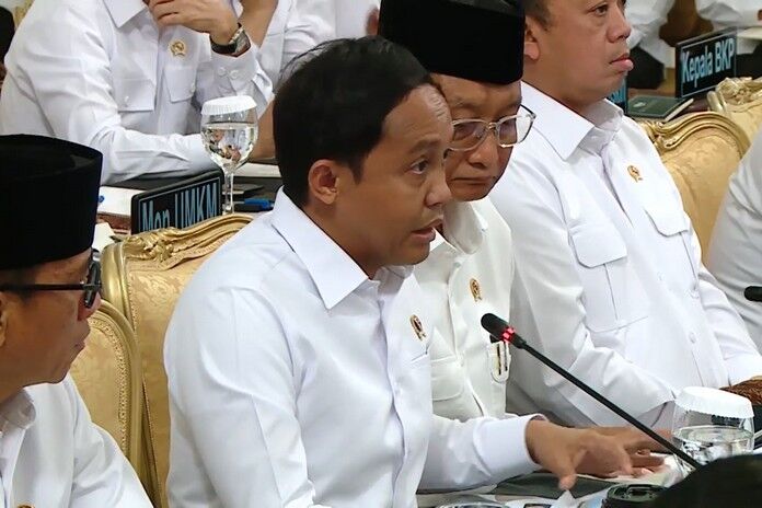 Presiden RI Prabowo Subianto memberikan arahan tegas kepada Menteri Kehutanan Raja Juli Antoni. Prabowo memerintahkan Raja Juli agar tak ragu-ragu mencabut Perizinan Berusaha Pemanfaatan Hutan (PBPH) dari perusahaan yang terbukti melanggar aturan. Tak pandang bulu, siapa pun yang melanggar harus ditindak. Hal itu dikatakan Prabowo dalam Sidang Kabinet Paripurna di Istana Negara, Jakarta, Senin (15/12). (Foto Dok. Badan Komunikasi Pemerintah)