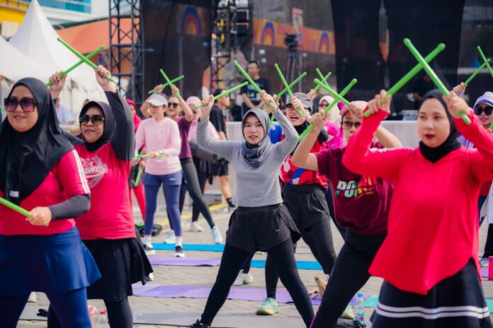 Menurutnya, setelah berlari dan berjalan santai, masyarakat diajak mengikuti Zumba masal yang membuat areal Gajah Mada Plaza bergema musik dan energi positif.