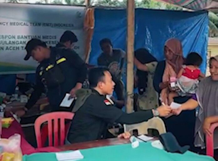 Aceh Tamiang, Idola 92.6 FM-Tenaga Cadangan Kesehatan Emergency Medical Team (TCK-EMT) Pusat Krisis Kesehatan Kemenkes RI bergerak memberikan pelayanan medis kepada warga terdampak bencana di Pos Kesehatan Desa Babo, Kecamatan Bandar Pusaka, Kabupaten Aceh Tamiang, Aceh, pada Selasa (16/12).