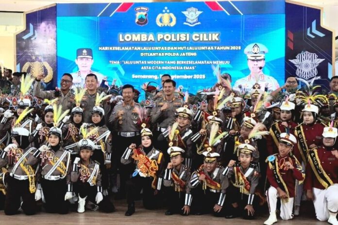 Polisi cilik sebelum beraksi melakukan foto bersama dengan jajaran Direktorat Lantas Polda Jateng.