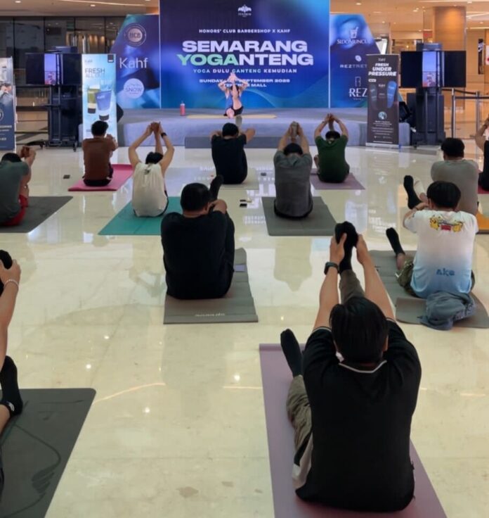 Untuk kali pertamanya di Semarang, yoga hadir dengan sentuhan berbeda lewat acara “SEMARANG YOGANTENG: Yoga Dulu, Ganteng Kemudian” yang digelar di Tentrem Mall, Minggu (28/9).