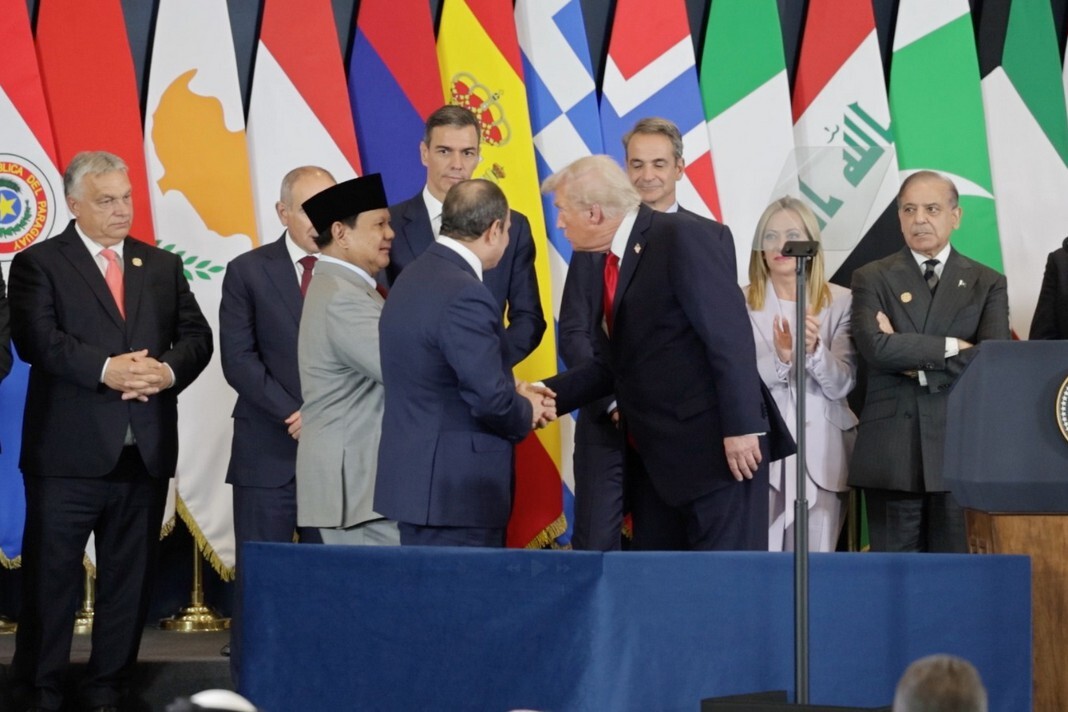 Di hadapan para kepala negara dan delegasi internasional, Trump menyebut Prabowo sebagai sosok yang luar biasa dan memberikan apresiasi atas kiprah Indonesia dalam diplomasi perdamaian.