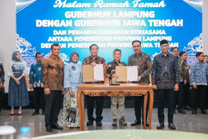 Semarang, Idola 92,6 FM-Pemprov Jawa Tengah dan Pemprov Lampung melakukan penandatanganan sebanyak 11 kerja sama berbagai bidang, dengan nilai transaksi mencapai Rp832,3 miliar per tahun.