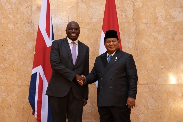 Prabowo disambut langsung oleh Wakil Perdana Menteri Inggris, David Lammy, yang juga mengenakan jas berwarna serupa.