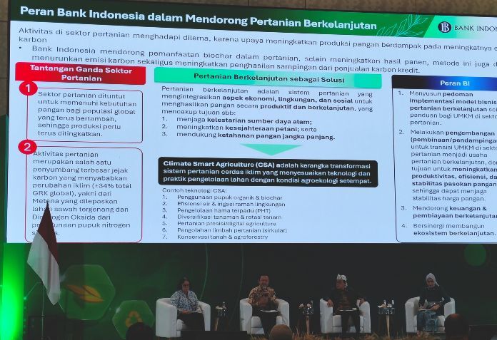 Direktur Departemen Ekonomi Keuangan Inklusif dan Hijau Bank Indonesia Kurniawan Agung mengatakan penerapan teknologi biochar, dinilai mampu meningkatkan produktivitas pertanian secara bertahap dan berkelanjutan. Hal itu dikatakan dalam acara Peluncuran Buku Pedoman Implementasi Model Bisnis Pertanian Berkelanjutan Berbasis CSA-Biochar di Hotel Padma Semarang yang diselenggarakan Kantor Perwakilan BI Jateng, Senin (9/2).