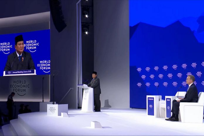 Forum tahunan World Economic Forum (WEF) 2026 mendadak terisi riuh tepuk tangan saat Presiden RI Prabowo Subianto memaparkan capaian program Makan Bergizi Gratis (MBG) yang dimulainya pada awal 2025. Prabowo menyebut hingga hari ini, ada 21.102 dapur MBG di berbagai titik Tanah Air dan melayani 59,8 juta penerima manfaat. Hal itu dikatakan Prabowo saat berpidato di forum WEF 2026, di Davos, Swiss, Kamis (22/1). (Foto Dok. Bankom Pemerintah RI)