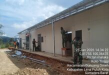 Tengok saja bangunan huntara di Kompleks Huntara di Jorong Kayu Pasak Nagari Salareh Aia, Kecamatan Palembayan, Agam. Deretan huntara sudah terbangun. Personel TNI tampak tengah memperkuat hunian dengan memasang tulang-tulang dan jendela.