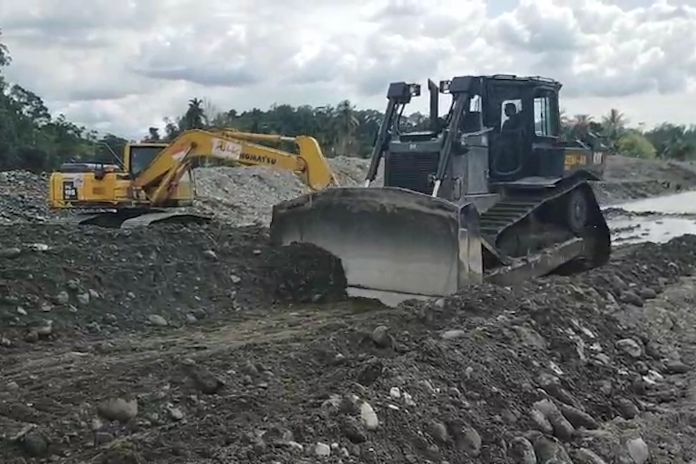 Pantauan di lapangan pada Selasa (3/2), TNI menurunkan buldoser perayap (crawler dozer) berjenis D9T di sebuah sungai di Desa Jambak, Kecamatan Pante Cermin, Kabupaten Aceh Barat. Alat berat ini dikerahkan untuk memindahkan aliran sungai.