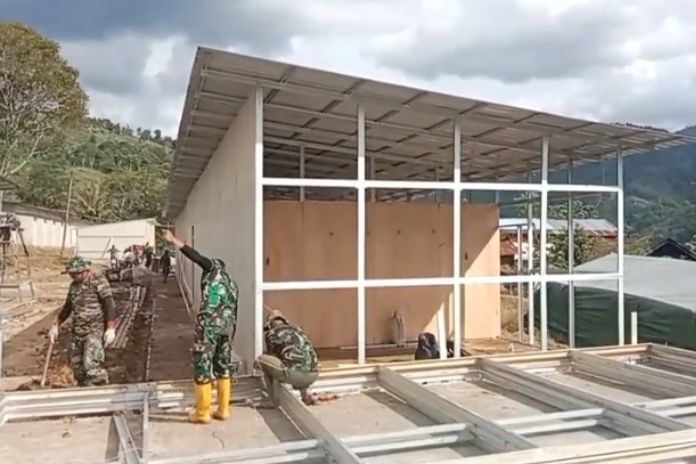 Di lapangan, pembangunan huntara menunjukkan progres signifikan. Di Kabupaten Gayo Lues, Aceh, personel TNI dari Komando Distrik Militer setempat membangun huntara bagi warga terdampak bencana di Desa Agusen, Kecamatan Blangkejeren.