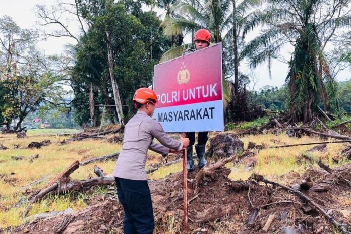 Para personel Polda Sumbar tampak menyiapkan lokasi, mengangkut peralatan, hingga melakukan penggalian.