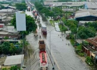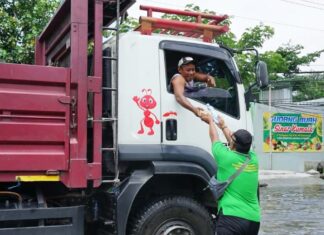 Terjebak Banjir, Sopir Truk Dapat Bantuan Makan dari Pemprov